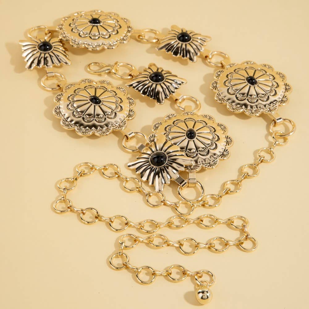 Western Turquoise Stud Floral Concho Chain Belt