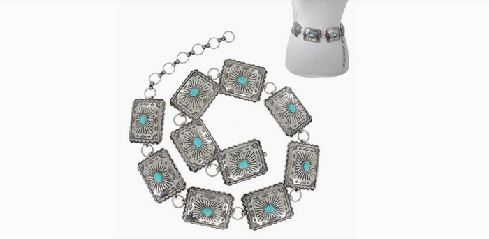 Western Fashion Turquoise Single Stud Hoop Chain Belt