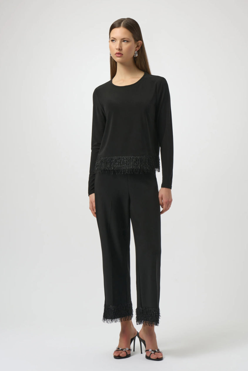 Joseph Ribkoff Silky Knit Top With Fringe Hem
