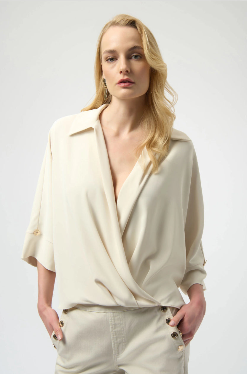 Joseph Ribkoff Woven Twill Boxy Wrap Top