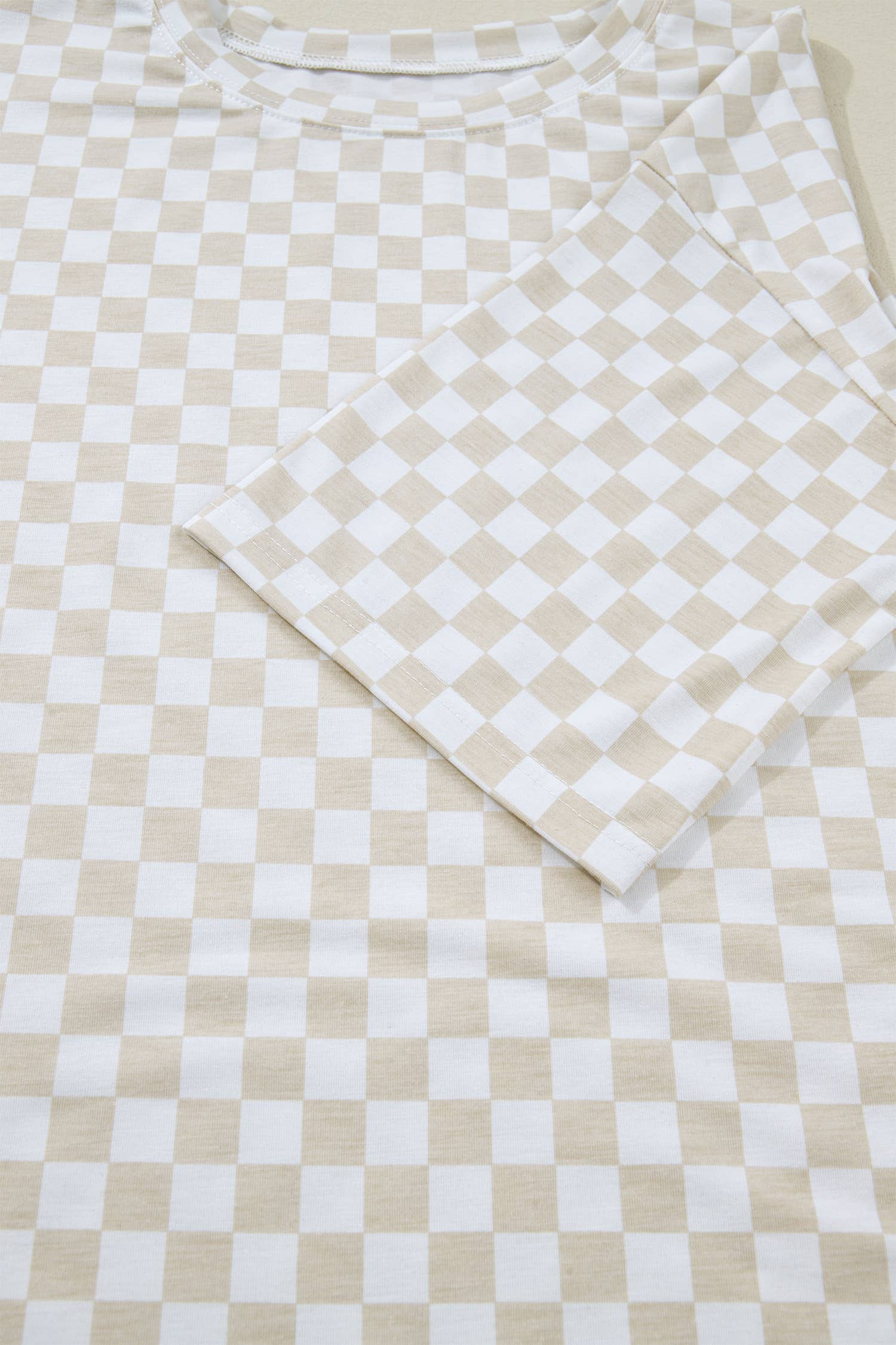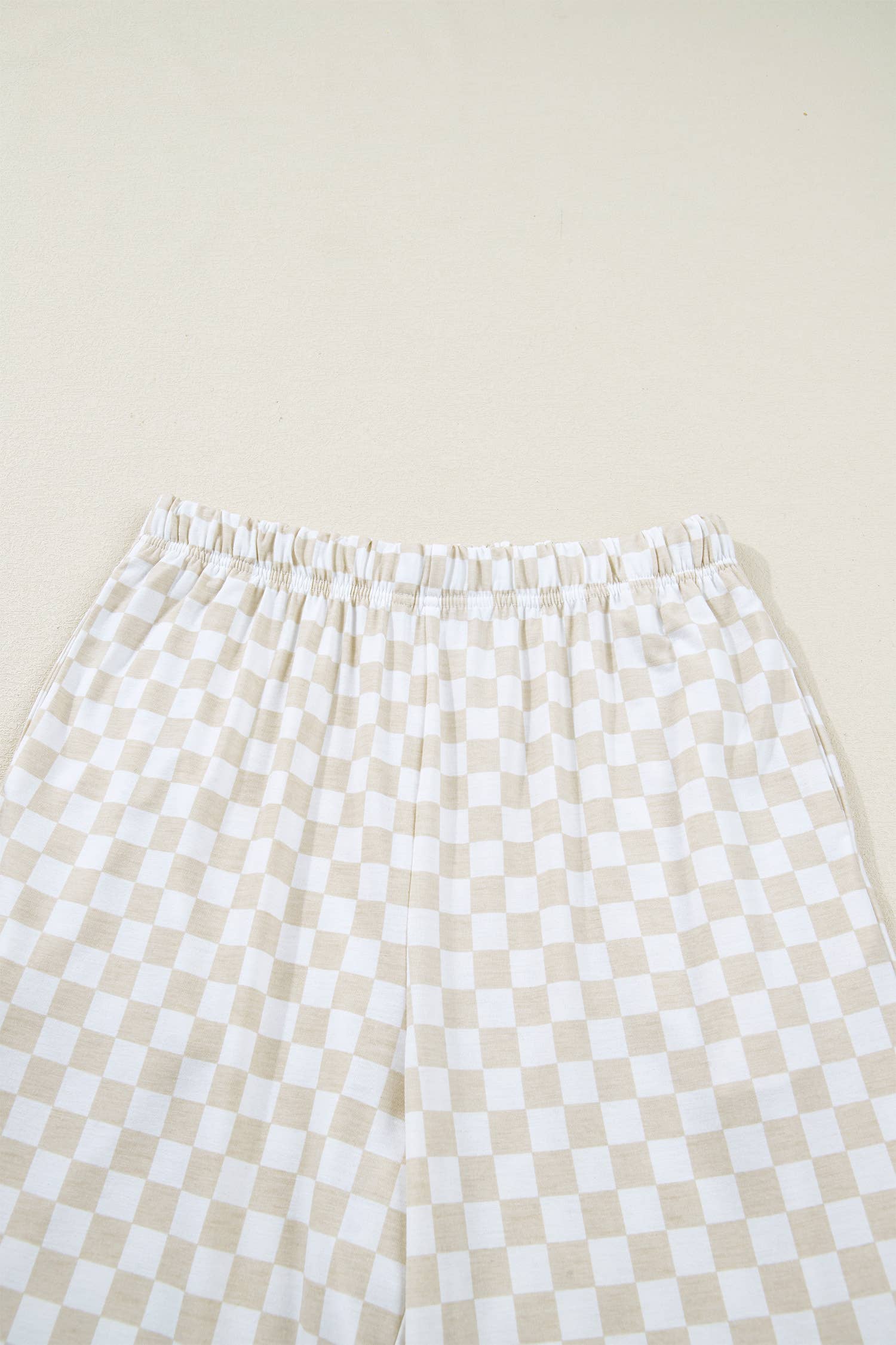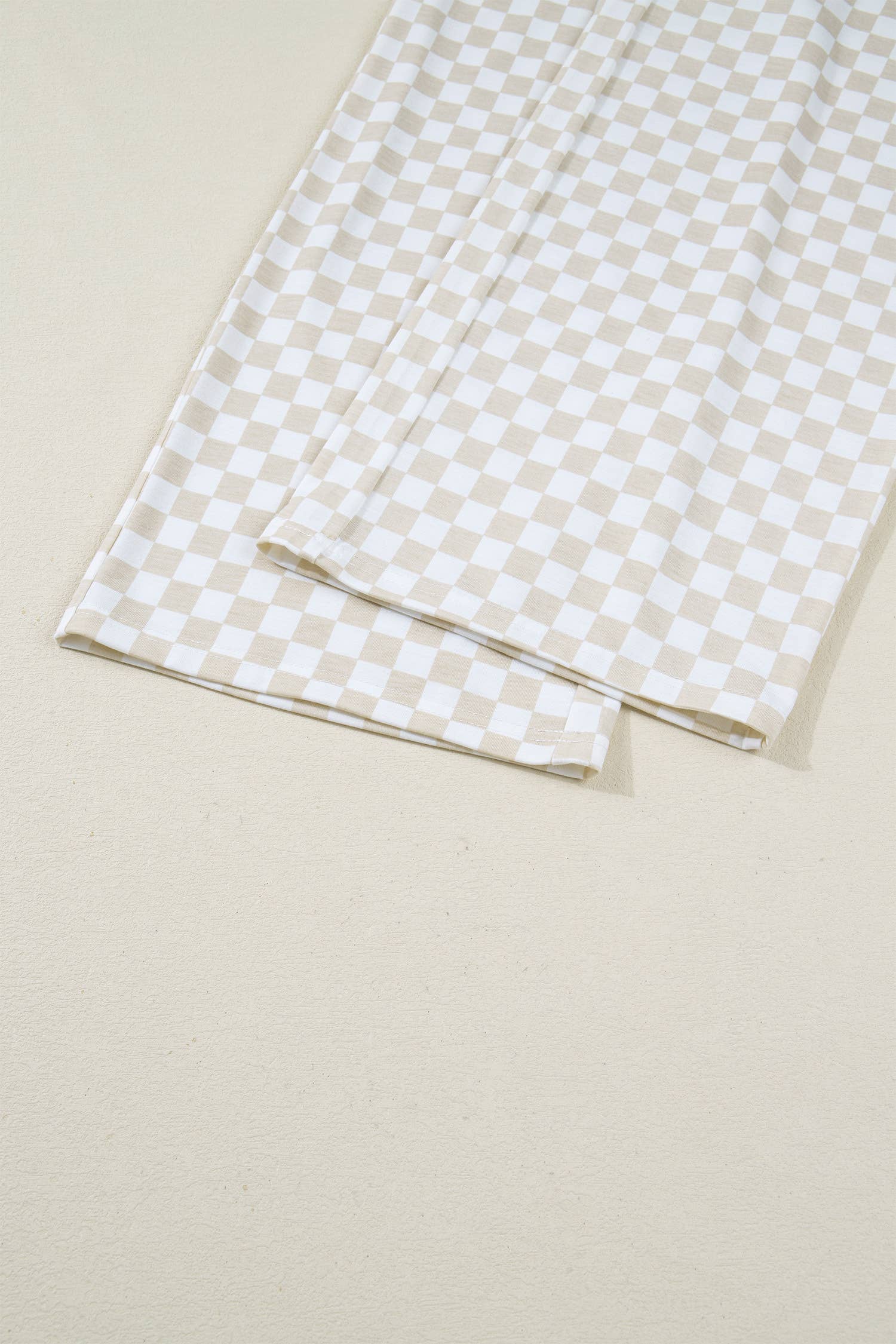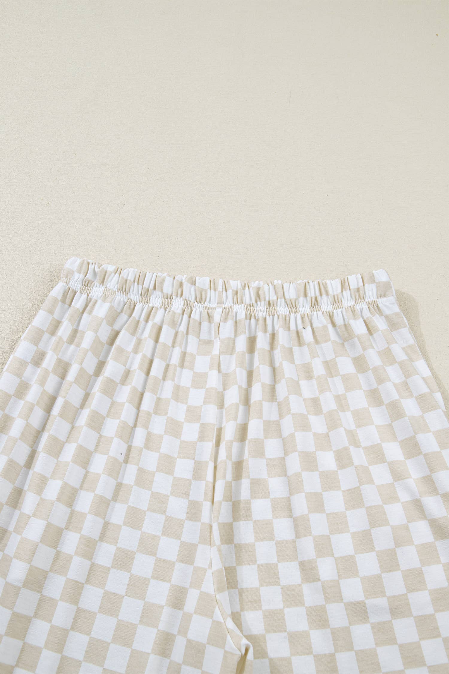 Checkered Print Half Sleeve Tee 2pcs Lounge Pant Set