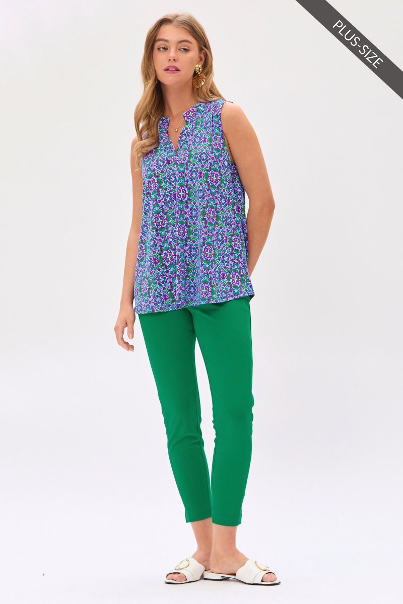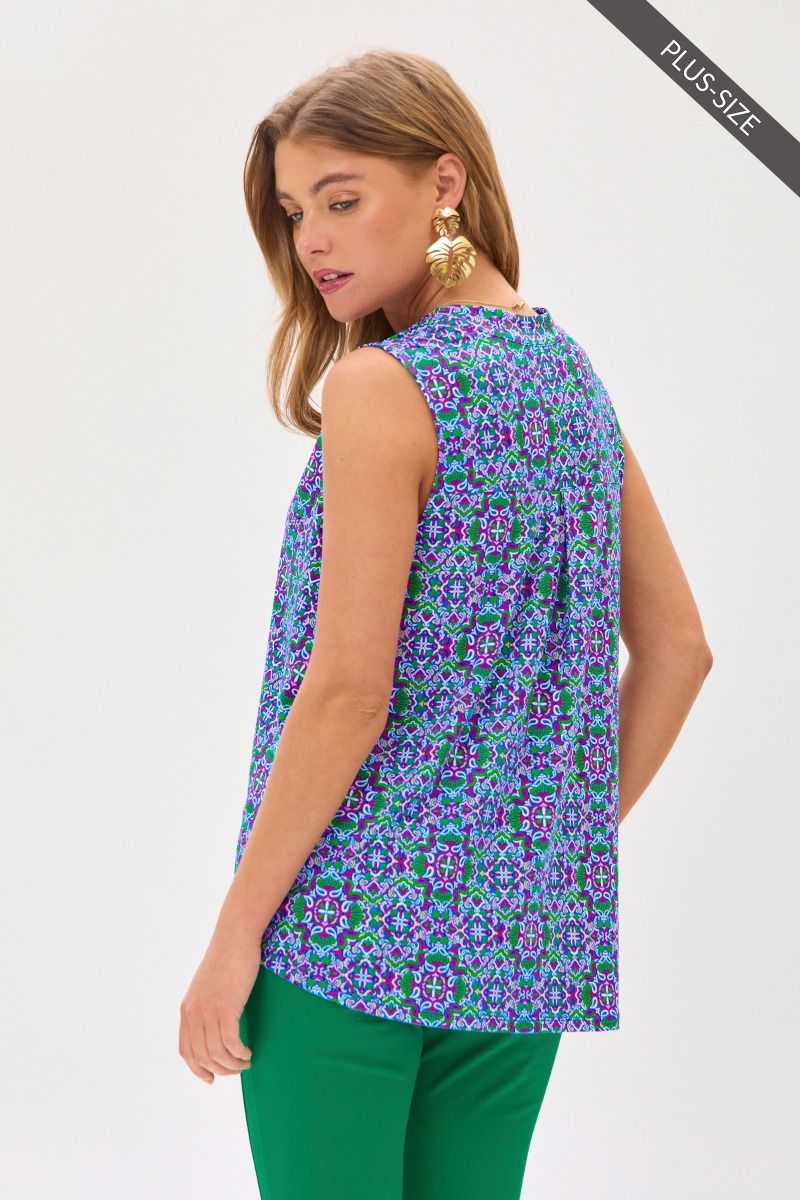 Our colorful tank features an a-line bodice with split neckline and mandarin collar. With an easy, flowy, and relaxed fit, this tank will keep you cool for the warmer season! Not to mention it's also non sheer, stretchy, and wrinkle free